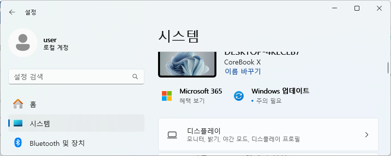 “시스템”의 “디스플레이” 설정이 있다.