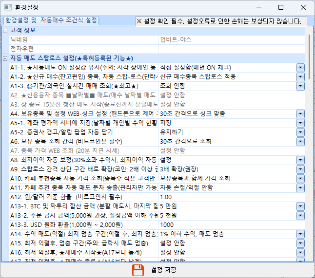 스탁게이트 1.0, 2.0 모두 초기 설정은 기본값으로 설정이 잘 되어 있기 때문에, 전문 사용자가 아니라면, 설정을 크게 손 댈 필요는 없습니다.