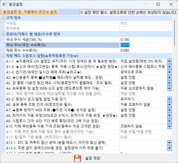 5.1. 국내 주식, 해외주식 수수료율 및 세금 비율 설정¶