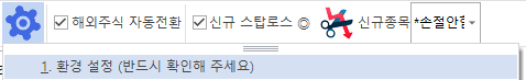 스탁게이트는 매우 많은 설정 기능이 있습니다. 무엇보다도 중요한 것이 구동 환경 설정입니다.