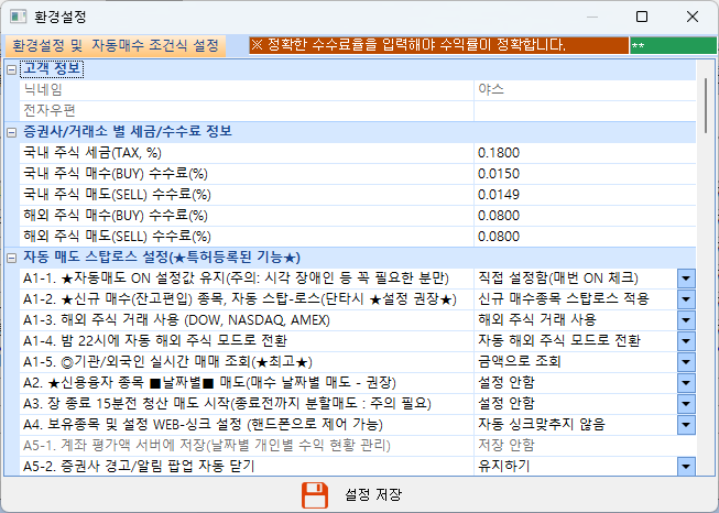 하지만, 세금 및 수수료 율은 정확하게 입력해야, 수익률이 정확하게 계산됩니다.